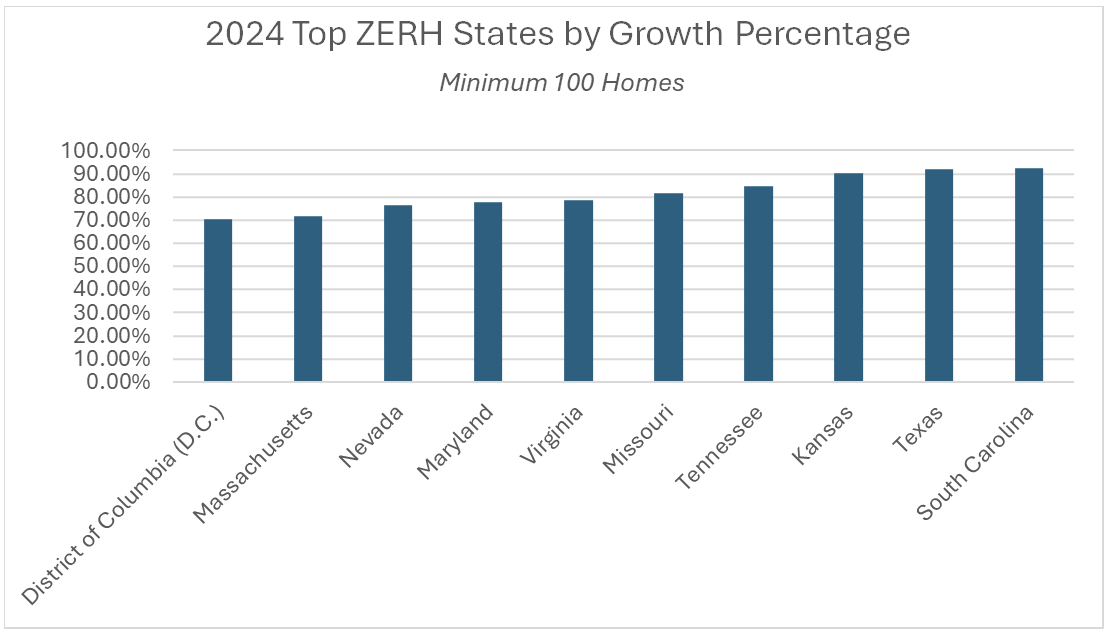 Maryland (1,800) and Texas (1,792) led the way with the most certified ZERH homes in 2024. New Jersey (1,253), Pennsylvania (1,222) and Arizona (1,132) all topped the previous record number of certifications for a state set by New Jersey in 2023 (1,081).