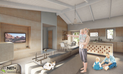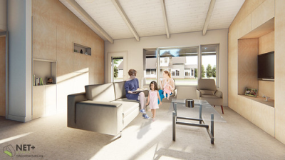 To provide a solution, the Kansas State Solar Decathlon Build team designed a protype home that could be constructed and occupied quickly, offering residents an affordable, high-quality space both physically and psychologically. Because the design is easily replicable, the Net Positive Studio meets all of the requirements necessary for ending the affordable housing drought in St. John, as well as giving the town an important tool for sustaining itself in the future.