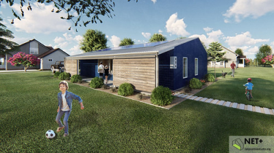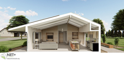 The Net Positive Studio is an interdisciplinary research and design effort in the College of Architecture, Planning, and Design at Kansas State University. Built as part of the U.S. Department of Energy Solar Decathlon® 2020 Build Challenge, the project seeks to develop an affordable and net-zero housing prototype that can strengthen and sustain communities. Partnering with Stafford County Economic Development, a nonprofit organization, the Net Positive Studio team designed a single-family home for the rural town of St. John, Kansas. This home demonstrates an attractive, high-performance, replicable housing solution that can replace the community’s shrinking housing stock while encouraging households to invest in the future of their town.
