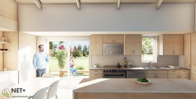 - The Net Positive Studio used 3D energy analysis software to optimize the envelope insulation and daylighting as well as reduce energy usage and costs.