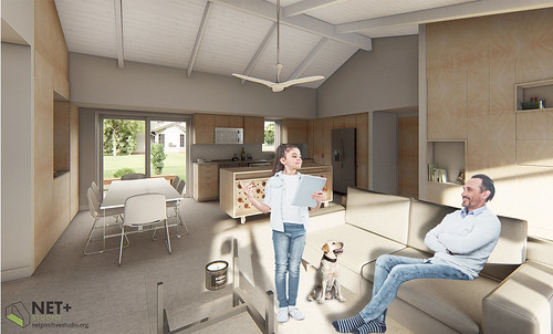The Net Positive Studio realizes several concepts and values that the Kansas State Solar Decathlon team explored in an early research phase, drawing on theories of space, user needs, and mental well-being in addition to passive design. These concepts were presented to community members in a series of meetings, where input was incorporated into the evolving design. This research guided the team's design decisions toward a home that provided users with strong mental, physical, and emotional health as well as providing robust energy performance in an affordable build. The following concepts were established based on St. John’s needs: