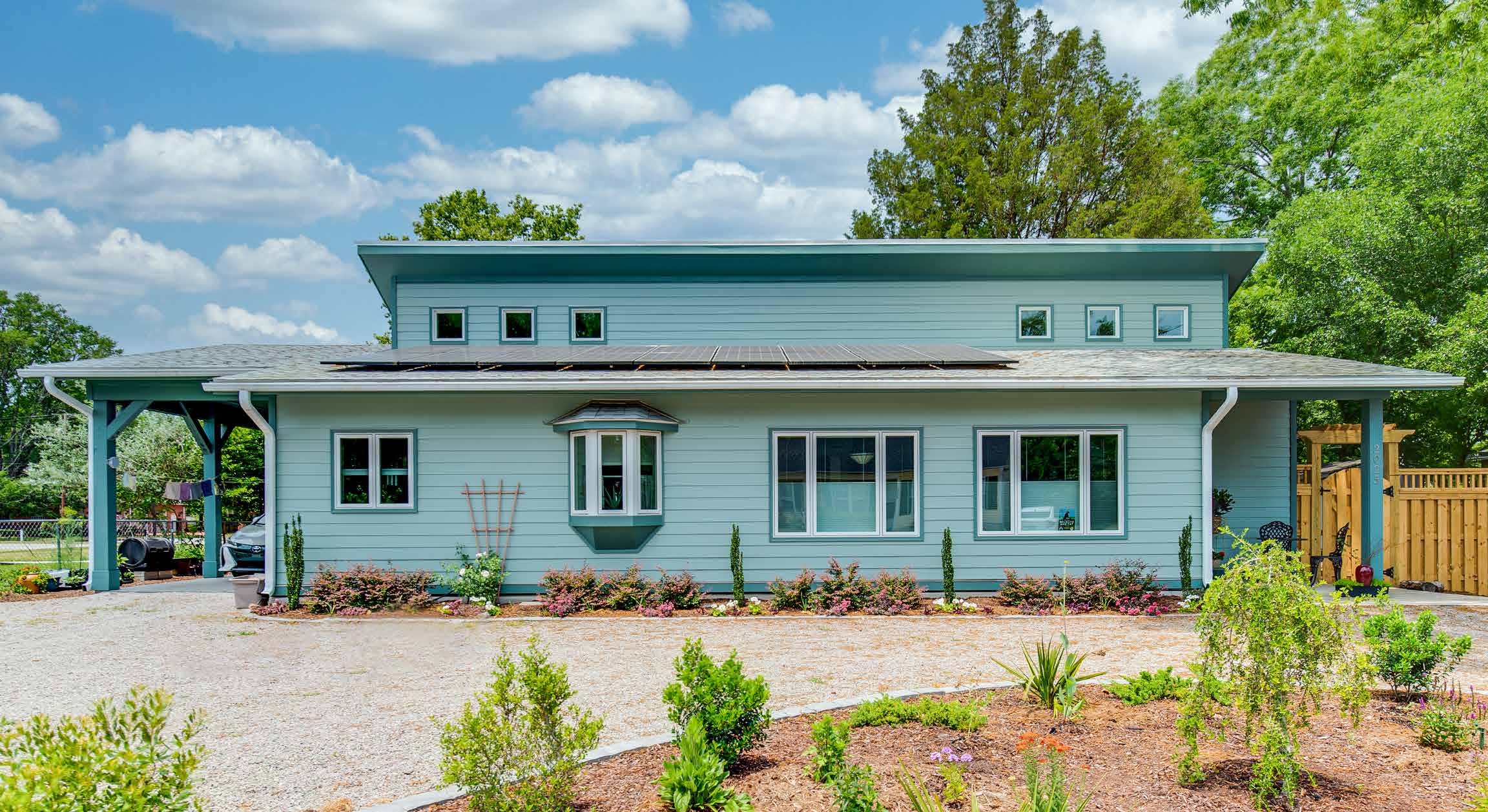 • Solar: 7.2 kW, rooftop panels, passive solar design.