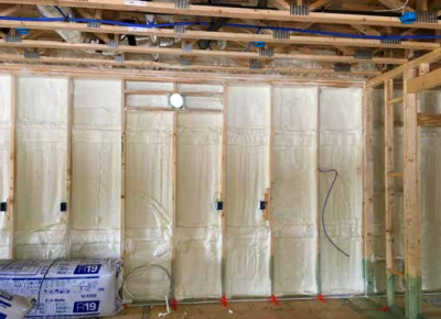 • Air Sealing: 0.67 ACH50. Open-cell foam in rim bands, over top plates, over garage, in cantilevers. Sill gaskets.