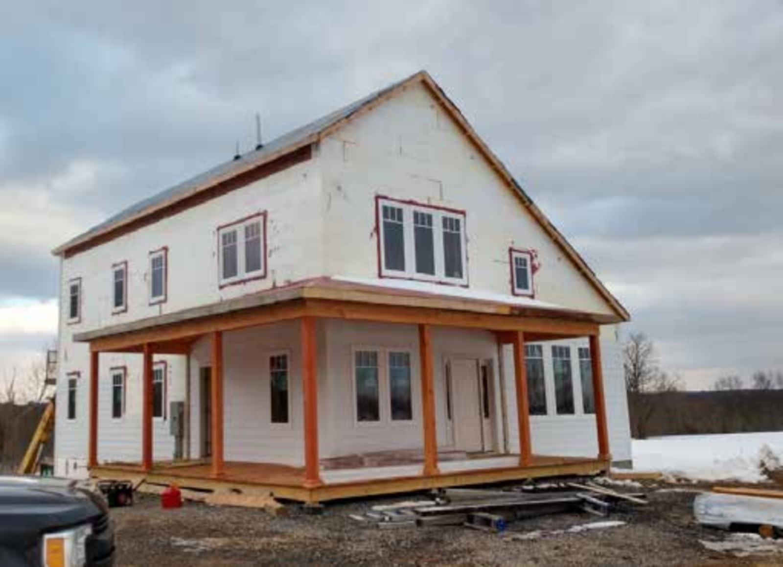 - Foundation: Insulated daylight basement: R-22 11.25" ICF, above-grade vinyl trim and siding, below-grade cementitious boards. 3.5" R-26 closed-cell spray foam under slab.