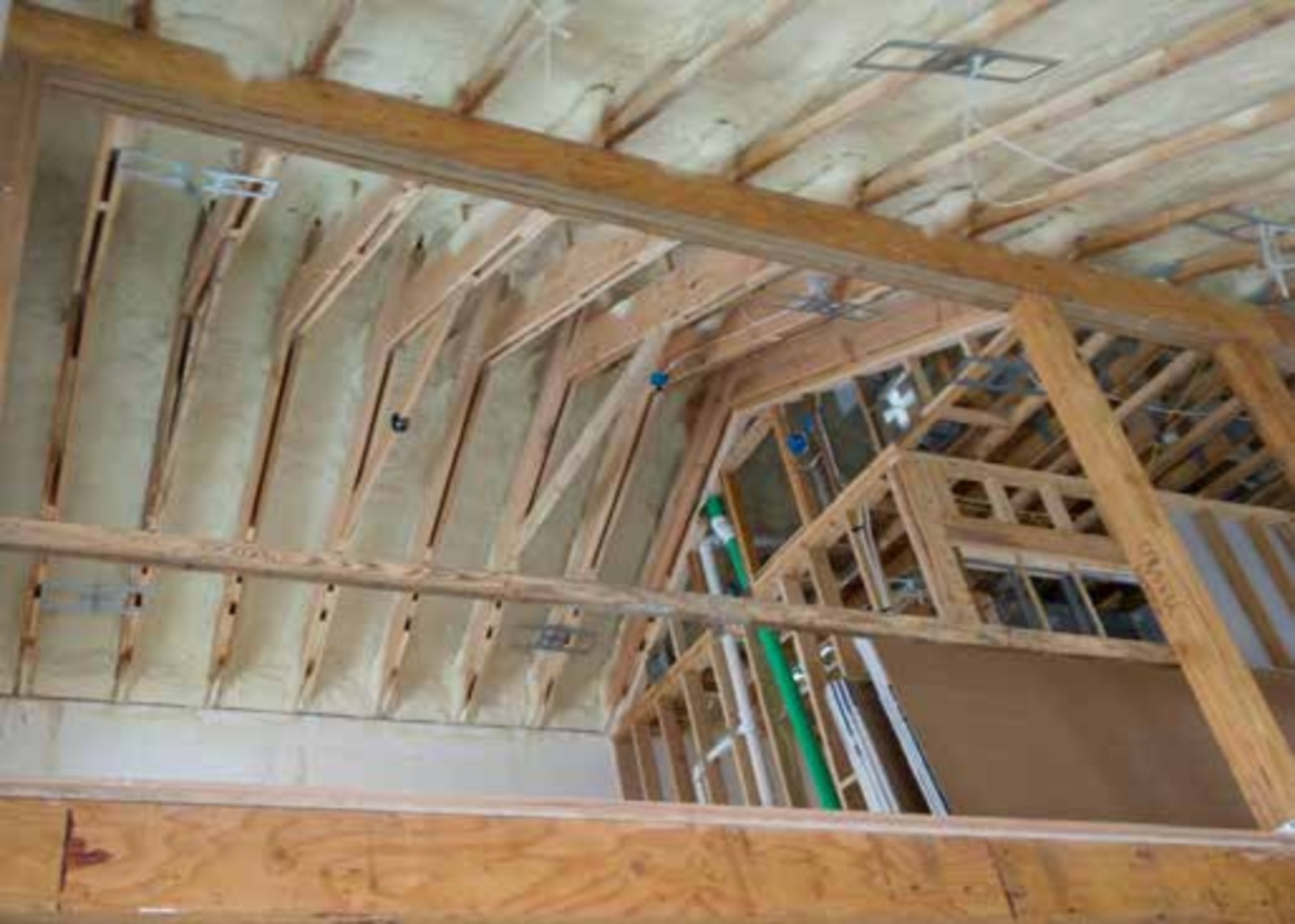 - Attic: Unvented attic: 10" R-45 medium-density + 2" R-14 high-density spray foam.
