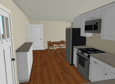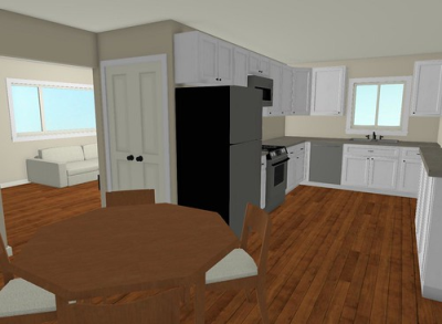 CampusCraft incorporates design innovations that reduce the home's negative impact on the environment while also providing maximum comfort for the eventual occupants. By incorporating recycled wood into the home, the updated design has an earthy feel and sustainable aspect. A dead tree on the property that had to be removed now complements the home's decor through an accent wall, while also gaining new life as landscaping mulch. Recycled cabinets that were touched up and modernized also add to the overall aesthetic of the home. The interior design is united with an aquaponics system built by DU's engineering team. This complete ecosystem is a central feature of the renovated home, acting as the centerpiece of the kitchen and living room.