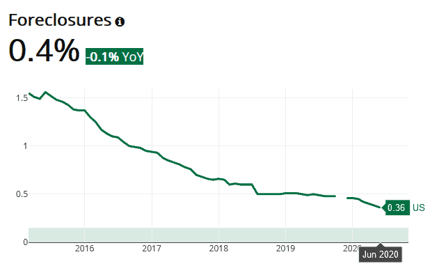 Black Knight data show since 2005 the average ratio of seriously delinquent mortgages to those in foreclosure was 1.4. Foreclosure protections for government-backed mortgages have thus far prevented a widespread foreclosure crisis, and the ratio of seriously delinquent borrowers to active foreclosures has risen sharply, reaching 9.75 as of June 30.